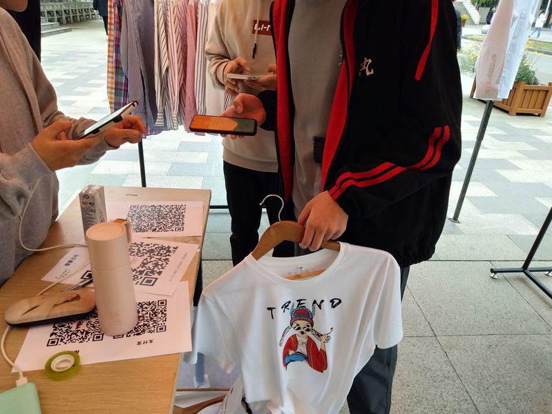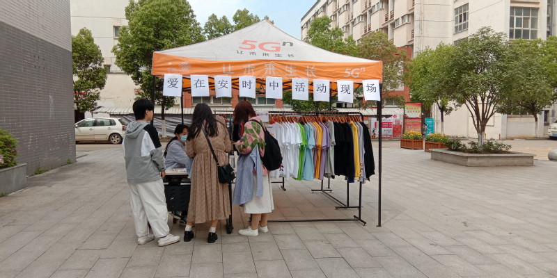 武职网讯(通讯员 孔莉 朱丽芬)“100元3件优质全棉衬衣、38元一件创意文化衫,各类创意单品欢迎同学们前来选购定制……”4月6至10日,纺织与服装工程学院学生双创团队“凝度衣号”设计作品在东三食堂前火热售卖,吸引力众多师生争相购买。