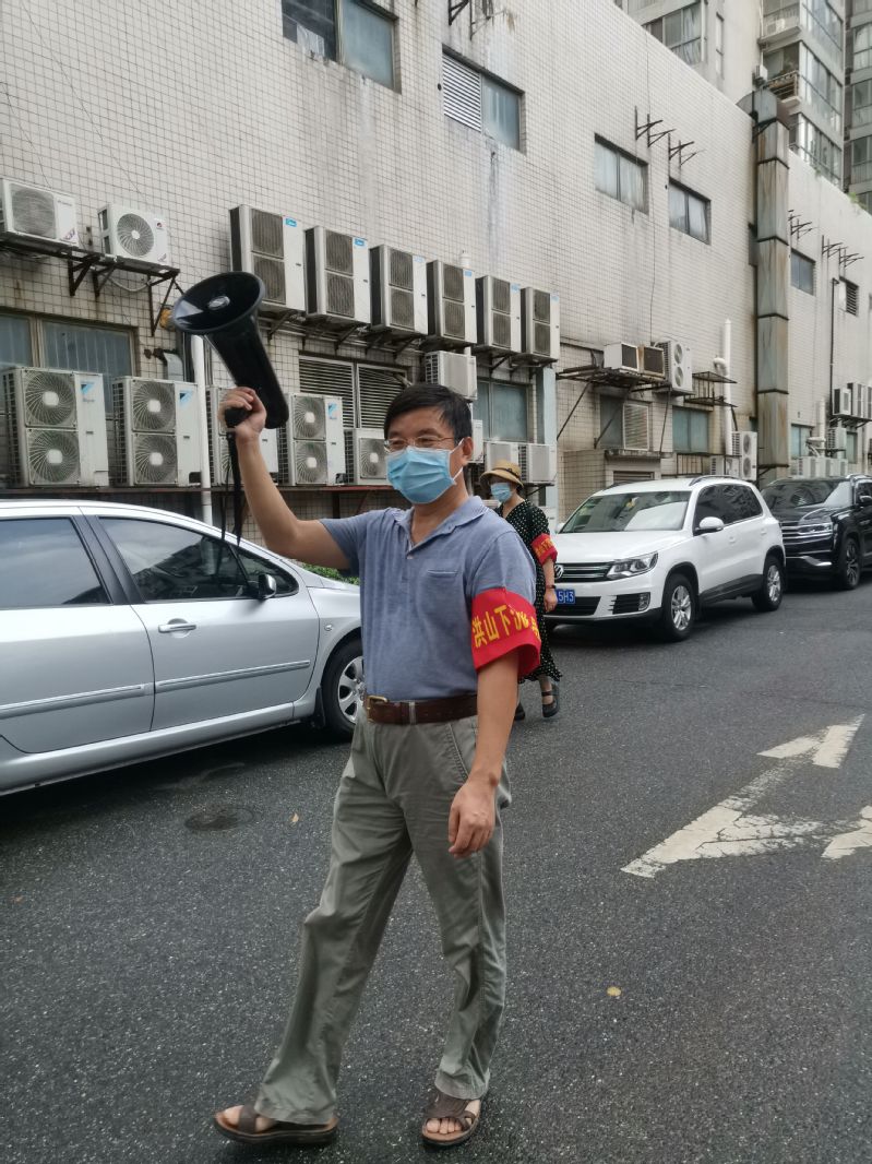 8月7日,王作宏对所负责楼栋开展地毯式摸排,一户户仔细排查、一家家仔细询问、一个个认真登记,还不忘进行疫情防控宣传。“我们是先坐电梯到顶楼,再从上至下入户排查,为了节约等电梯的时间,王作宏坚持忍着膝盖疼痛走楼梯完成了排查任务,非常令人感动。”与王作宏一同参与“六查”工作的服装党支部书记陈汉东说道。
