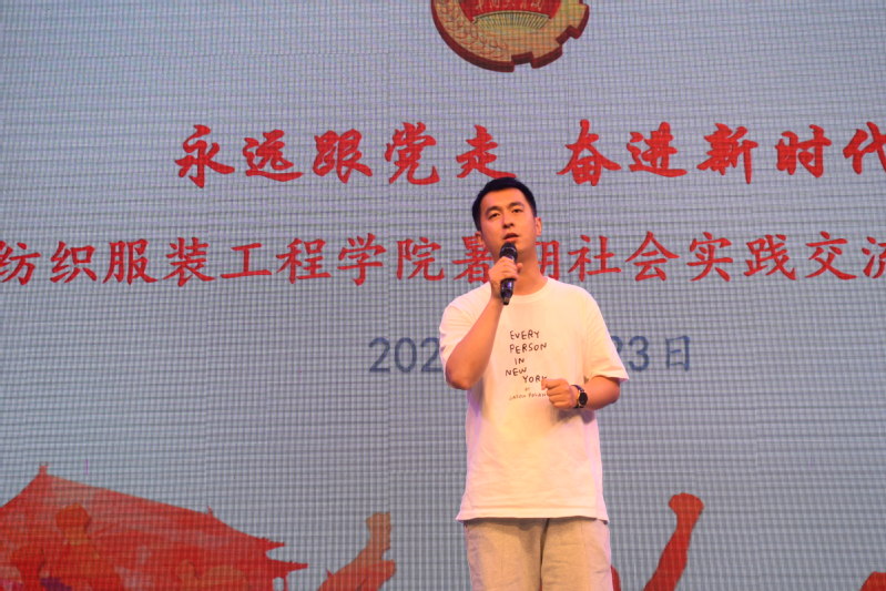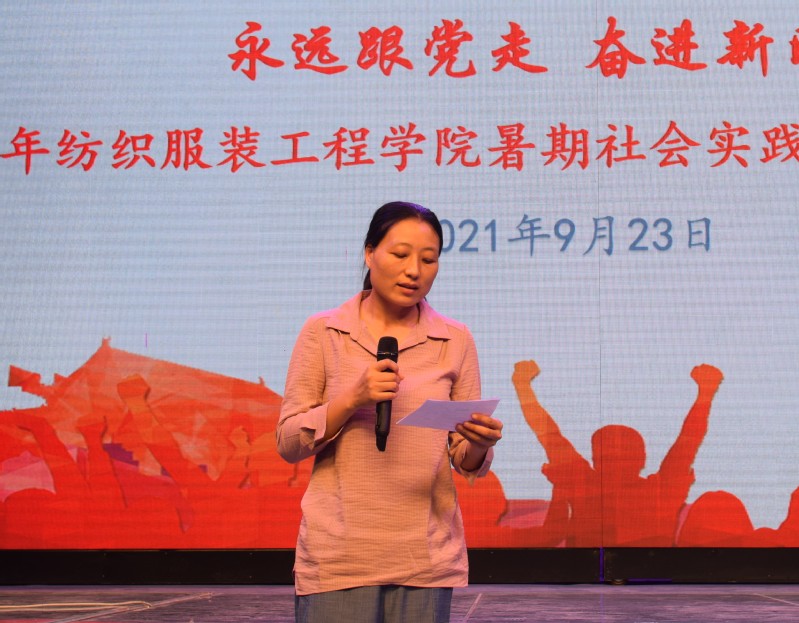 武职网讯(通讯员 耿小虎 大学生记者 孙婷婷)9月23日晚19:00,纺织与服装工程学院“永远跟党走,奋进新时代”暑假社会实践分享会暨表彰大会在凌曦楼三楼服装表演厅圆满举办。该院学生工作办公室主任徐芳芝、服装教研室教师熊赛、服装学生党支部教师李佐峰以及分团委书记耿小虎老师出席了此次活动并担任了评委,11位学生个人代表与1支实践团队进行暑期社会实践分享交流。