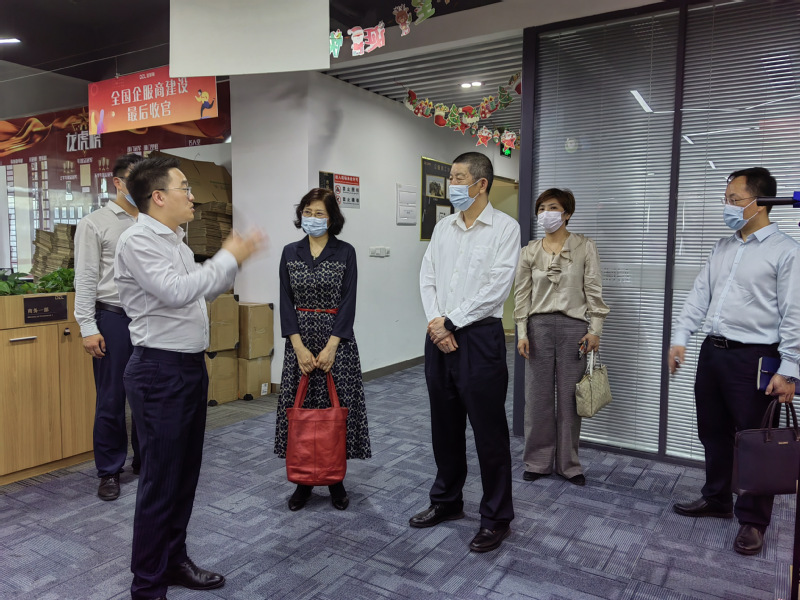 在湖北定制链科技有限公司董事长兼CEO苏超超的陪同下,李洪渠一行参观了公司文化展示厅、服装展示厅、SAAS服装定制平台和实时业务监测系统,线上线下工作环境,深入领略了服装产业互联网企业的商业逻辑和运营体系,感受到公司的“定制一切 链接所有”的企业愿景和蓬勃奋发的企业精神。