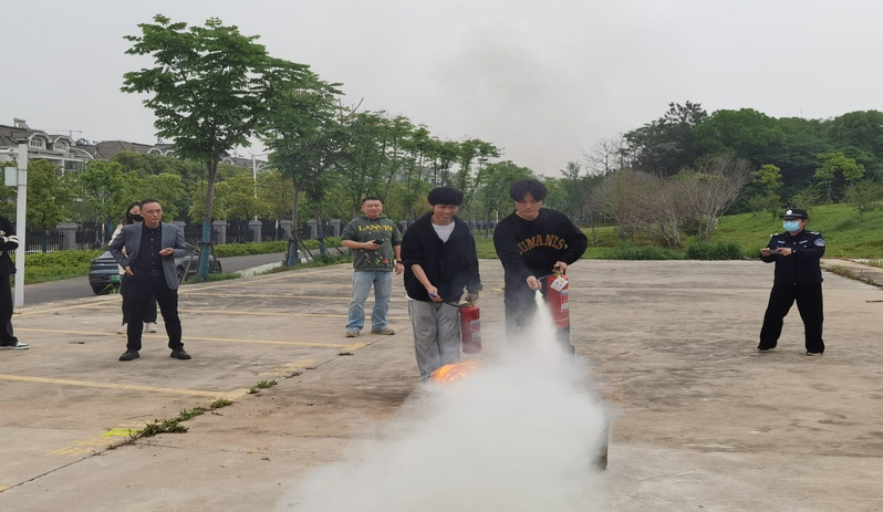 演练正式开始后,学校保卫处安全教员用浅显易懂的语言,结合高校发生的火灾案例向师生讲解了火灾的危害性、如何在发生险情时及时报警并向消防人员说明火灾地点、火势、起火原因、火灾现场如何逃生、自救等消防知识。随后,安全教员组织师生进行了灭火器演练,提高参训人员操作能力。